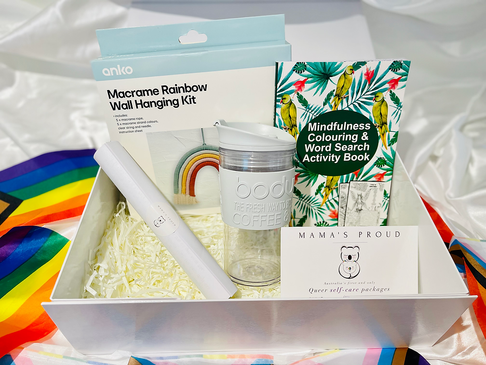 Self-care is an important part of feeling confident and empowered. Our Queer community faces unique challenges when it comes to feeling supported and loved throughout all of life's wonderful moments and the more challenging ones too. Whether your coming out, embarking on a new adventure in life, going through a challenging time or generally just want to experience a little extra TLC, we got you. Our individually curated packages provide a safe and uplifting experience, regardless of your identity, so that you can indulge in all the goodness that our packages have to offer. Mama's Proud packages are also a thoughtful way to connect with a loved one, send a supportive message during challenging times, or simply treat yourself.
